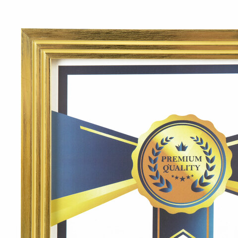 Рамка 21х30 см небьющаяся, багет 15 мм пластик, BRAUBERG "Respect", золотистая, 391272