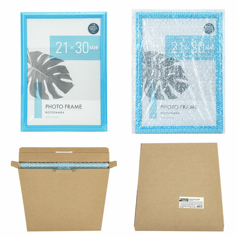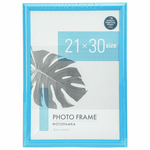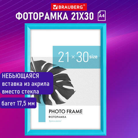 Рамка 21х30 см небьющаяся, багет 17,5 мм, пластик, BRAUBERG "Colorful", голубая, 391238