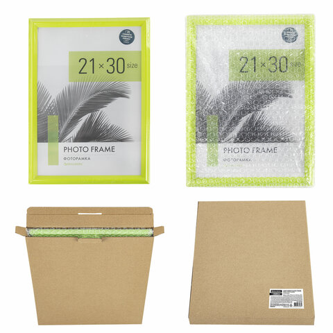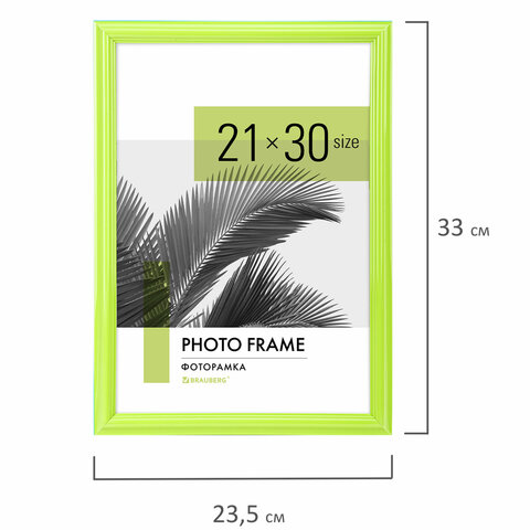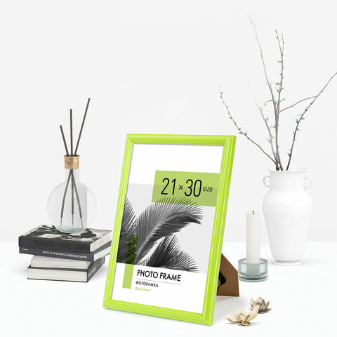 Рамка 21х30 см небьющаяся, багет 17,5 мм, пластик, BRAUBERG "Colorful", салатовая, 391244