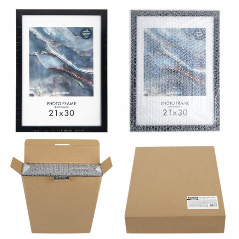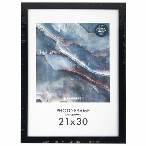 Рамка 21х30 см небьющаяся, КОМПЛЕКТ 4 шт., багет 16 мм МДФ, BRAUBERG "Basic", черная, 391259