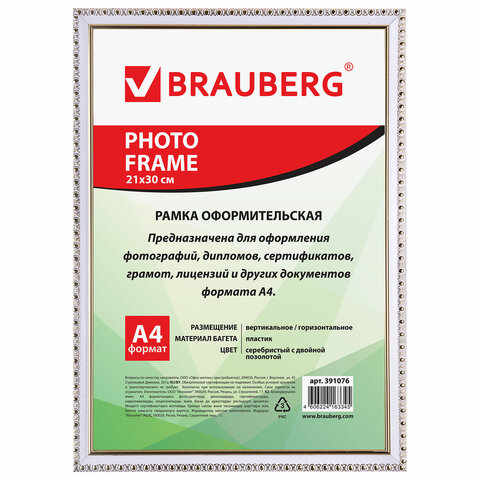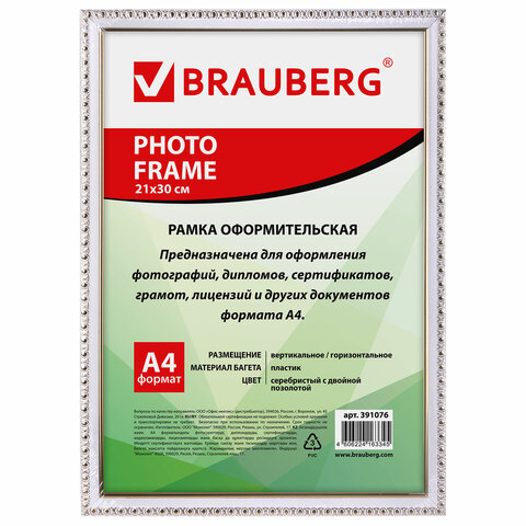 Рамка BRAUBERG "HIT5" для оформления фотографий, дипломов, сертификатов, грамот, лицензий и других документов формата А4 (21х30 см) будет гармонично смотреться в любом интерьере - дома и офисе, учебных учреждениях и магазинах, салонах и предприятий и др.