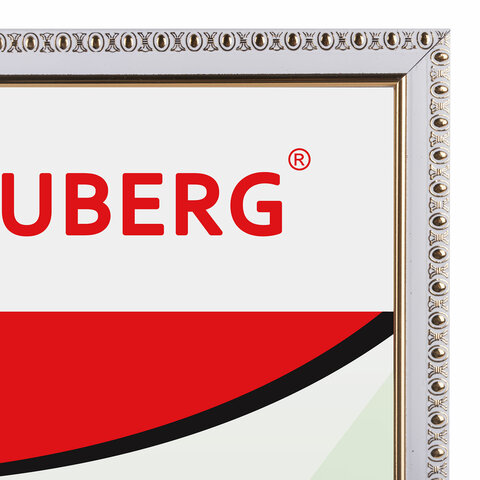Рамка 21х30 см, пластик, багет 16 мм, BRAUBERG HIT5, белая с двойной позолотой, стекло, 391077