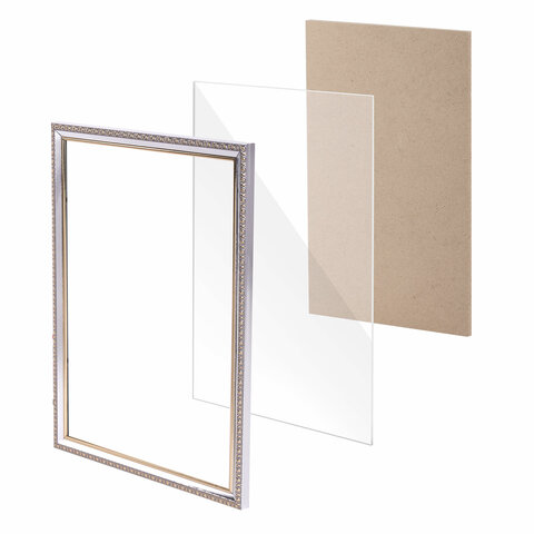 Рамка 21х30 см, пластик, багет 16 мм, BRAUBERG "HIT5", серебро с двойной позолотой, стекло, 391076
