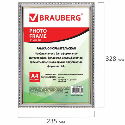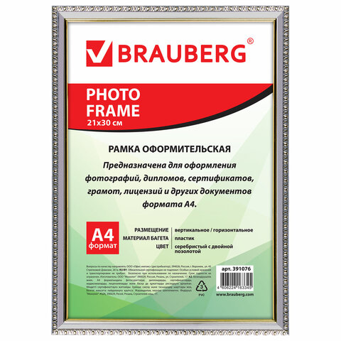 Рамка BRAUBERG "HIT5" для оформления фотографий, дипломов, сертификатов, грамот, лицензий и других документов формата А4 (21х30 см) будет гармонично смотреться в любом интерьере - дома и офисе, учебных учреждениях и магазинах, салонах и предприятий и др.