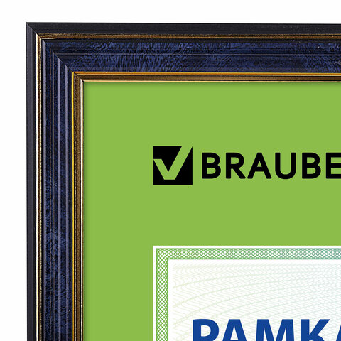 Рамка 21х30 см небьющаяся, пластик, багет 20 мм, BRAUBERG "HIT3", синий мрамор с двойной позолотой, 390988