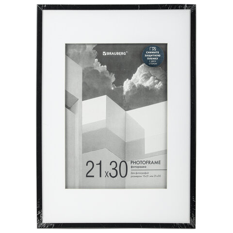 Рамка 21х30 см с паспарту 15х21 см небьющаяся, багет 5 мм, пластик, BRAUBERG "Smart", черная, 391280