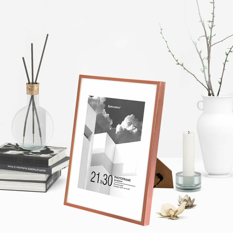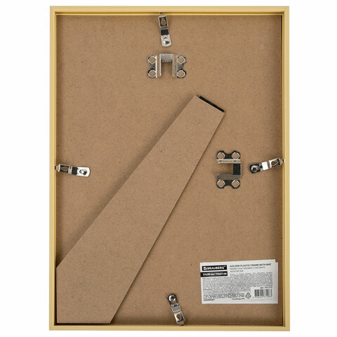 Рамка 21х30 см с паспарту 15х21 см небьющаяся, багет 5 мм, пластик, BRAUBERG "Smart", золотистая, 391279