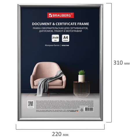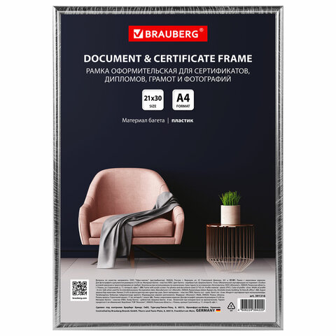 Рамка BRAUBERG "Slim" для фотографий, дипломов, сертификатов, грамот и других ценных документов гармонично будет смотреться как в офисном, так и в домашнем интерьере, а также в салонах и предприятиях, в магазинах и различных учреждениях.