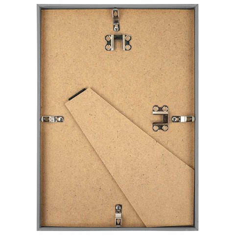 Рамка 21х30 см серебристая, пластик, багет 8 мм, BRAUBERG "Slim", плотный задник с ножкой, акриловый экран, 391316