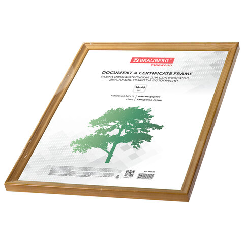 Рамка 30х40 см небьющаяся, дерево, багет 18 мм, BRAUBERG "HIT", канадская сосна, 390026
