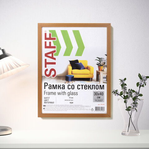 Рамка 30х40 см небьющаяся, STAFF "Grand", багет 18 мм, МДФ, цвет "миланский орех", 391201