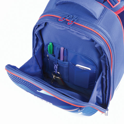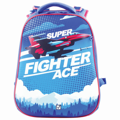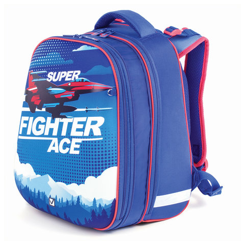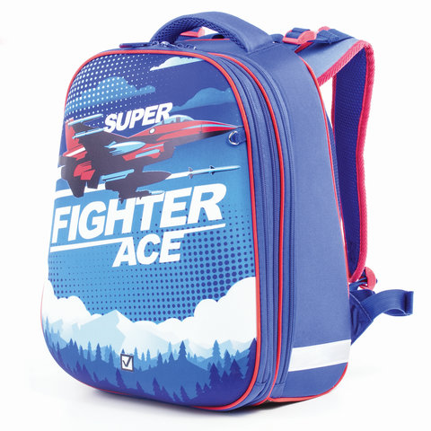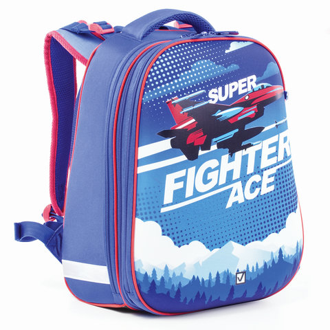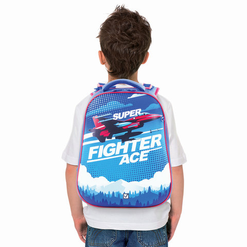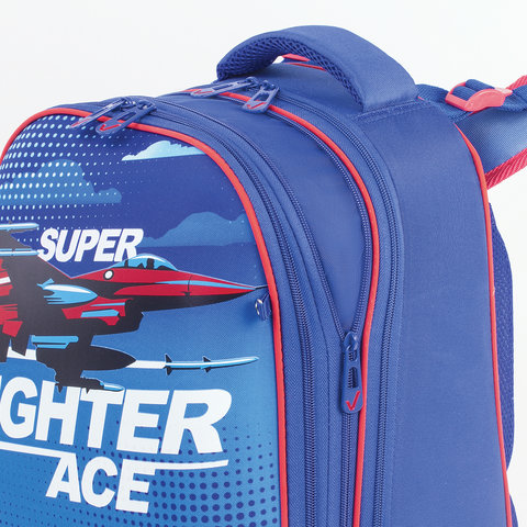Ранец BRAUBERG EXTRA, 2 отделения, анатомическая спинка, дополнительный объем, для мальчиков, "Истребитель", 39х28х19 см, 227844
