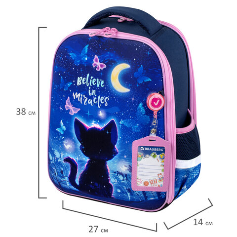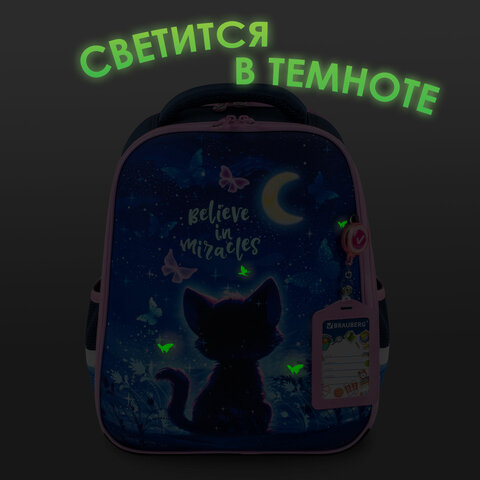 Ранец BRAUBERG FIT, 2 отделения, Night watcher, СВЕТЯЩИЙСЯ, 38х27х14 см, 273108