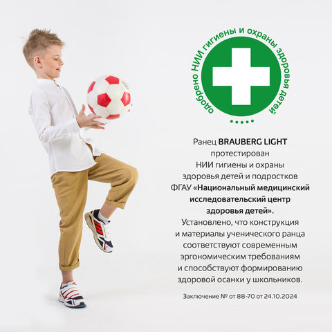 Ранец BRAUBERG серии LIGHT изготовлен из легкого, формоустойчивого, экологичного материала EVA с качественной печатью и различными эффектами. Ранец этой серии легкий, компактный, но при этом вместительный. В комплекте с ранцем идёт брелок-подвеска.