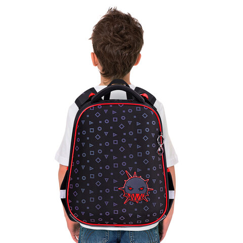 Ранец BRAUBERG LUMINOUS, 2 отделения, с брелоком, "Danger", СВЕТЯЩИЙСЯ РИСУНОК, 38х29х16 см, 272069