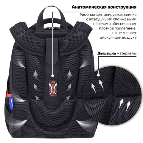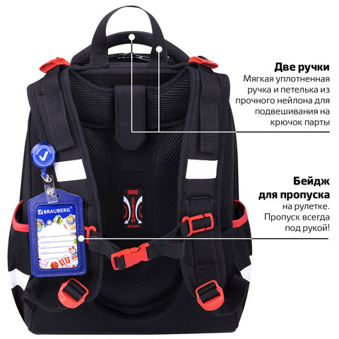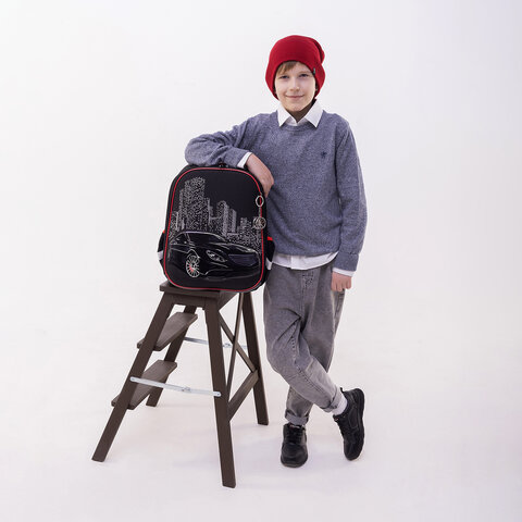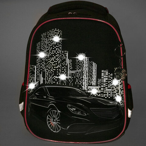Ранец BRAUBERG PREMIUM, 2 отделения, с брелком, "City car", LED ЛАМПОЧКИ, 38х29х16 см, 271356