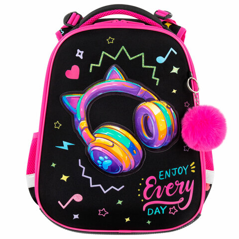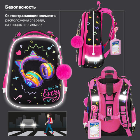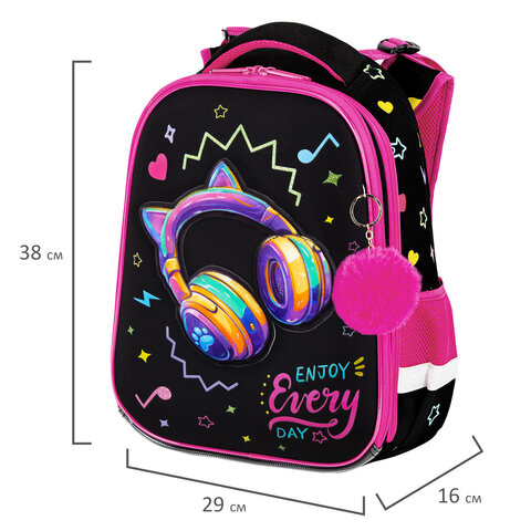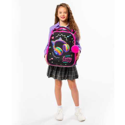 Ранец BRAUBERG PREMIUM, 2 отделения, с брелоком, "Headphones", велюровая нашивка, 38х29х16 см, 273100