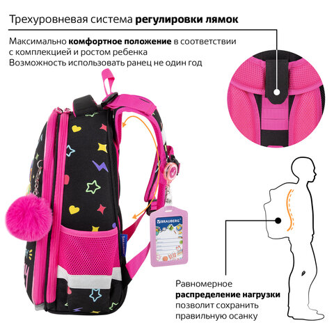 Ранец BRAUBERG серии PREMIUM – самой популярной капсульной формы среди ранцев. Изготовлен из легкого, формоустойчивого и экологичного материала EVA с качественной и яркой печатью и различными эффектами. В комплекте с ранцем поставляется брелок-подвеска.