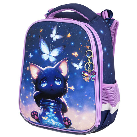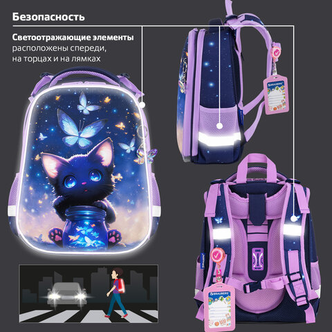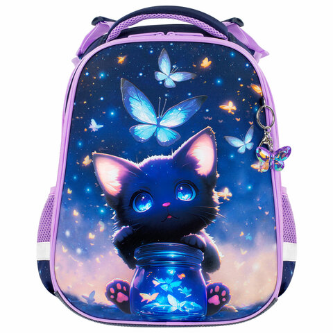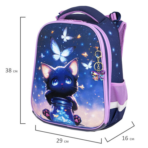 Ранец BRAUBERG PREMIUM, 2 отделения, с брелоком, "Night catcher", СВЕТЯЩИЙСЯ, 38х29х16 см, 273099