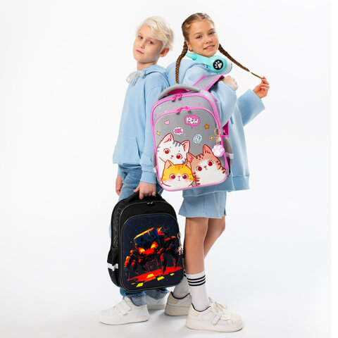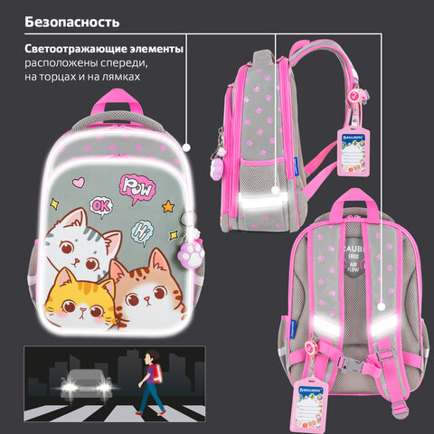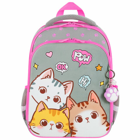 Ранец BRAUBERG QUADRO, 3 отделения, с брелком, Hi there, велюровая панель, 37х28х18 см, 273105