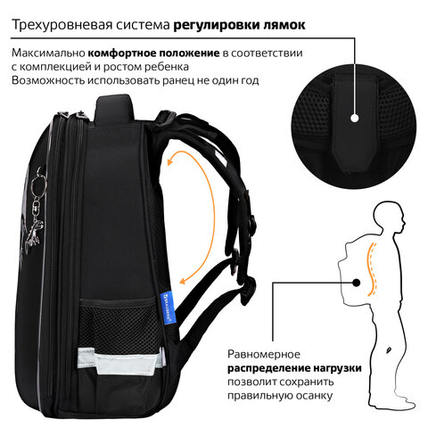 Ранец BRAUBERG серии SHINY самой популярной капсульной формы среди ранцев. Изготовлен из легкого, формоустойчивого, экологичного материала EVA с качественной и яркой печатью и различными эффектами. В комплекте с ранцем поставляется брелок-подвеска.