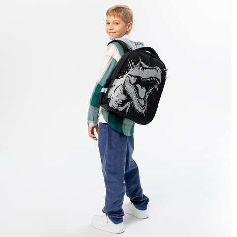 Ранец BRAUBERG SHINY, 2 отделения, с брелком, Scary dino, СВЕТЯЩИЙСЯ РИСУНОК, 38х28х14 см, 273143