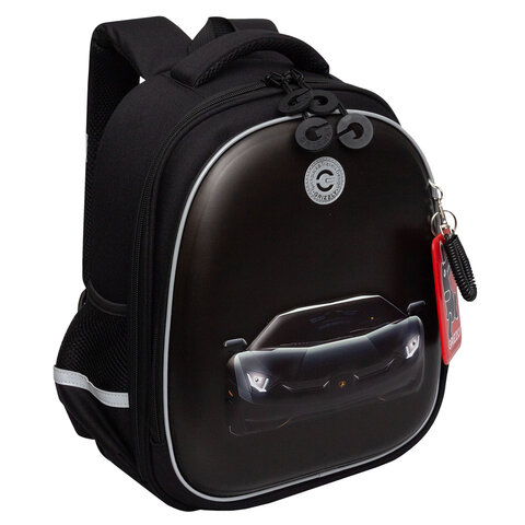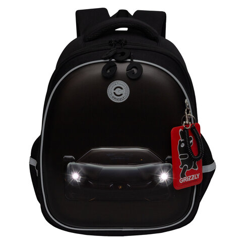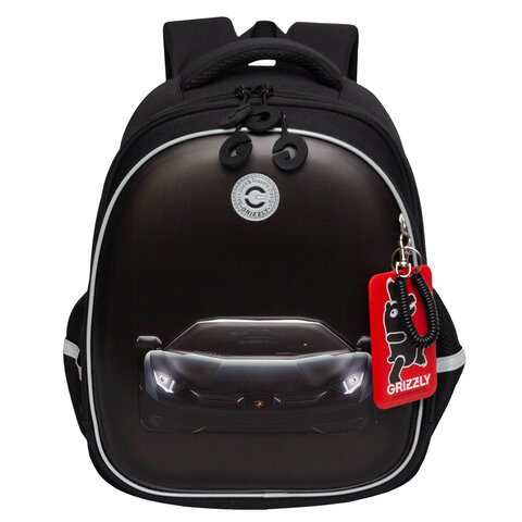 Ранец GRIZZLY анатомическая спинка, c бейджем, для мальчиков, "BLACK CAR", 36х28х20 см, RAz-587-7/1
