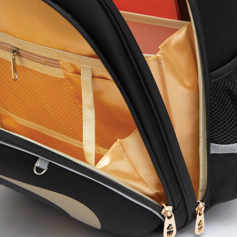 Ранец GRIZZLY RAz рассчитан на рост от 125 до 135 см. В него поместятся все школьные принадлежности. Основное отделение разбито на три отсека: для книг, тетрадей и папок А4. В дополнительное отделение помещается сменка (есть три кармашка для мелочей).