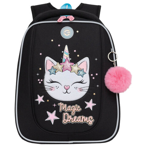 Ранец GRIZZLY анатомическая спинка, с брелоком, для девочек, MAGIC DREAMS, 36х29х18 см, RAf-492-3/3