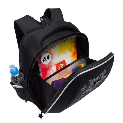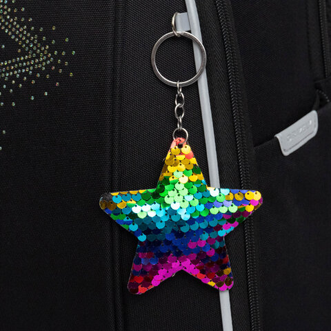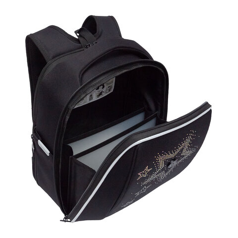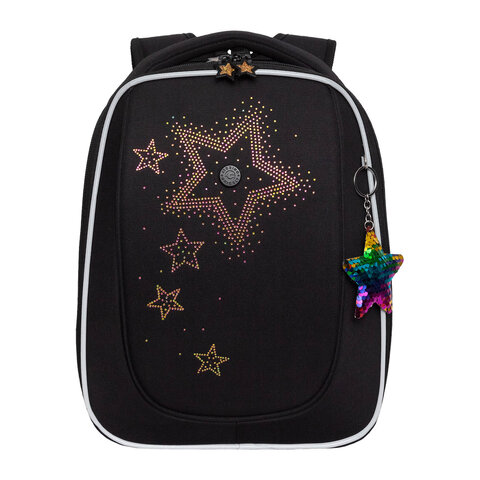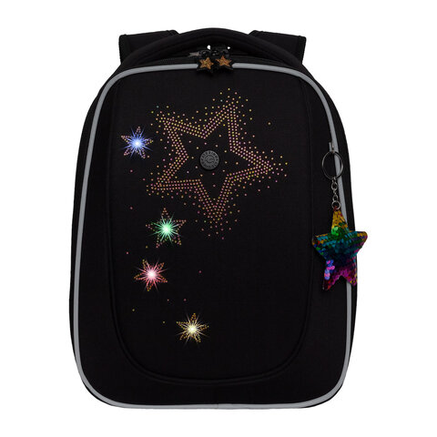 Ранец GRIZZLY анатомическая спинка, с брелоком, для девочек, "STARS", 36х29х18 см, RAf-592-4/3