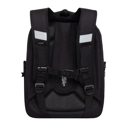 У ранца GRIZZLY формованная лицевая часть, жесткая анатомическая спинка и жесткое дно на ножках, благодаря чему содержимое надежно защищено. А еще такая конструкция равномерно распределяет нагрузку на спину.