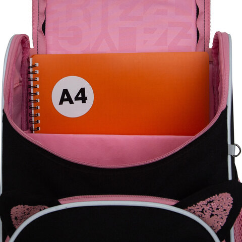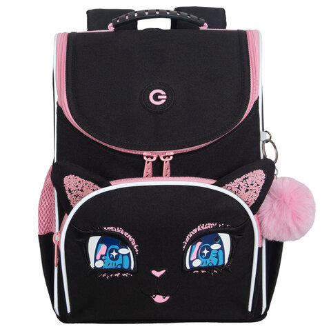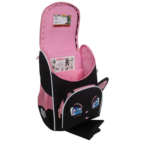 Ранец GRIZZLY анатомическая спинка, с мешком для обуви, для девочек, "SPARKLING EYES", 33х25х13 см, RAm-584-4/1