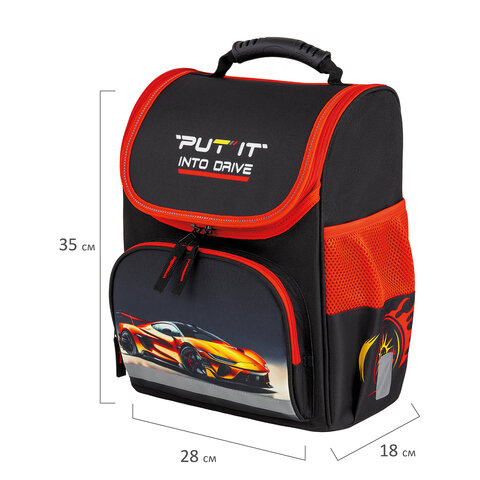 Ранец ПИФАГОР BASIC, 1 отделение, 3 кармана, эргономичная спинка, "Cool wheels", 35х28х18 см, 272045