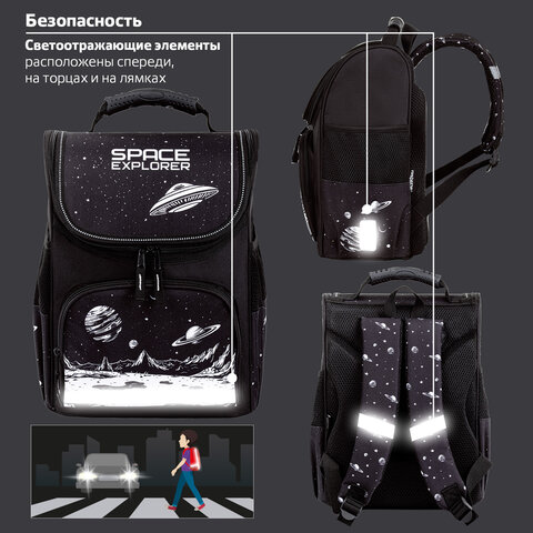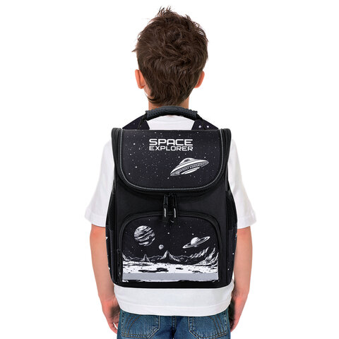 Ранец ПИФАГОР BASIC, 1 отделение, 3 кармана, эргономичная спинка, "Space invader", 35х28х18 см, 273140