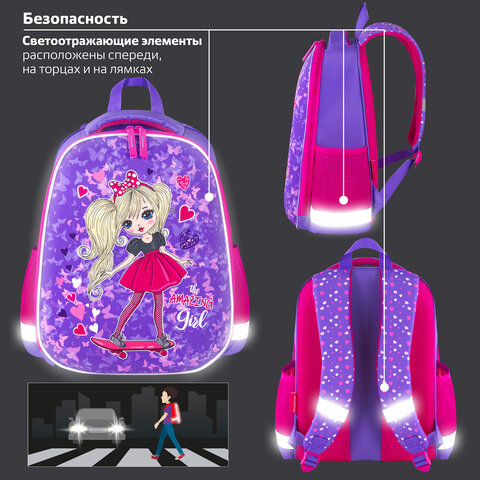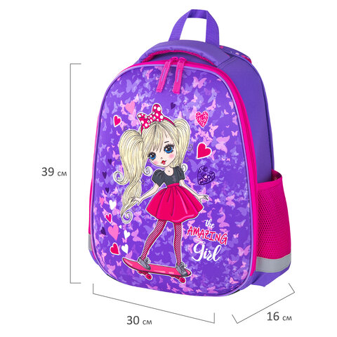 Ранец ПИФАГОР EVA BASIC, 1 отделение, эргономичная спинка, "Amazing girl", 39х30х16 см, 271377