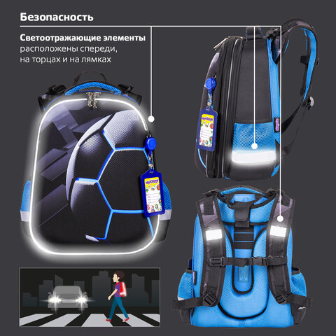 Ранец ЮНЛАНДИЯ EXTRA с дополнительным объемом, 2 отделения, "Soccer ball", 38х29х18 см, 270677