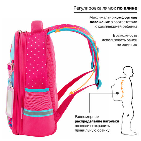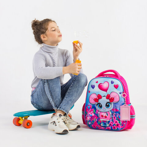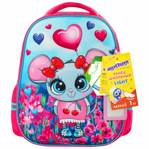 Ранец ЮНЛАНДИЯ LIGHT, 2 отделения, "Pretty mouse", 3D панель, 38х29х16 см, 270606