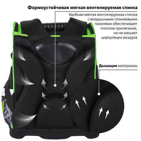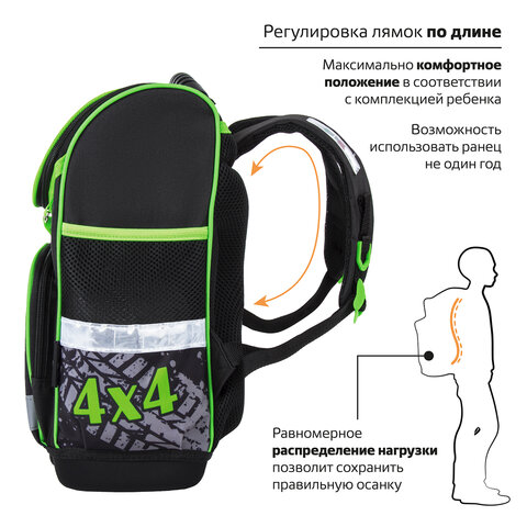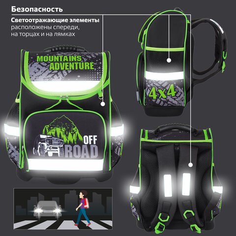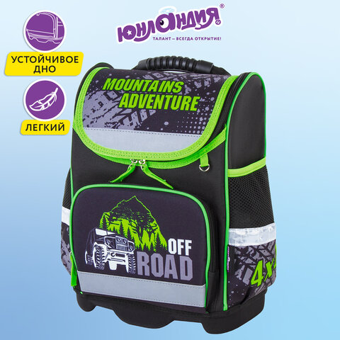 Ранец ЮНЛАНДИЯ WISE, 1 отделение, 3 кармана, устойчивое дно, "Offroad", 37х29х15 см, 228814