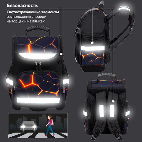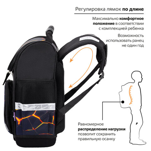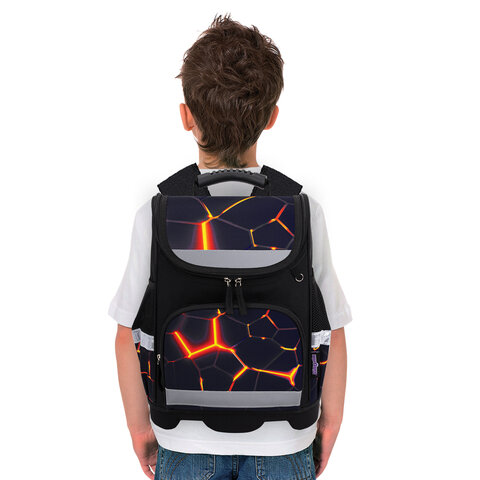 Ранец ЮНЛАНДИЯ WISE, 1 отделение, 3 кармана, устойчивое дно, Volcano split, 37х29х15 см, 273162