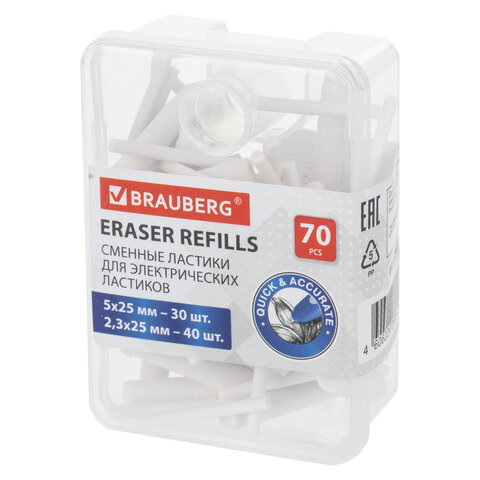 Ластик сменный для электрического ластика BRAUBERG, НАБОР 70 штук, размеры 5х25 мм/2,3х25 мм, 229611