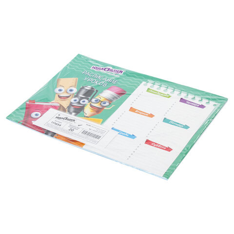 Расписание уроков ЮНЛАНДИЯ разработано специально для детей школьного возраста. Оно идеально подходит для планирования и подготовки заданий в домашних условиях. Поставляется в четырех вариантах дизайна (без возможности выбора).