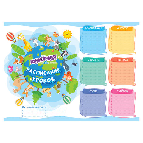 Расписание уроков и звонков А4, ЮНЛАНДИЯ, "Школьный мир", ассорти (4 вида), 111654