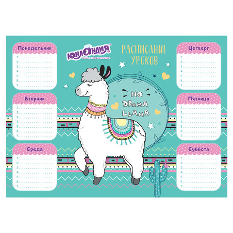 Расписание уроков ЮНЛАНДИЯ разработано специально для детей школьного возраста. Оно идеально подходит для планирования и подготовки заданий в домашних условиях. Поставляется в четырех вариантах дизайна (без возможности выбора).