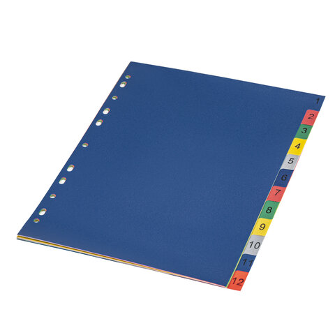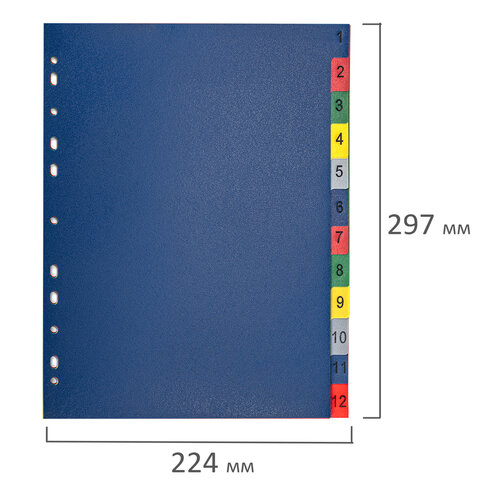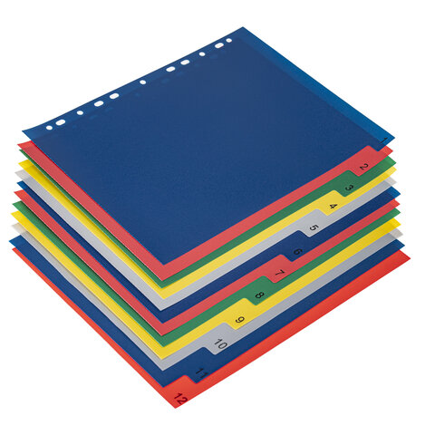 Разделитель пластиковый BRAUBERG, А4, 12 листов, цифровой 1-12, оглавление, цветной, РОССИЯ, 225610