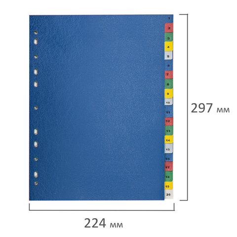 Разделитель пластиковый BRAUBERG, А4, 20 листов, цифровой 1-20, оглавление, цветной, РОССИЯ, 225611