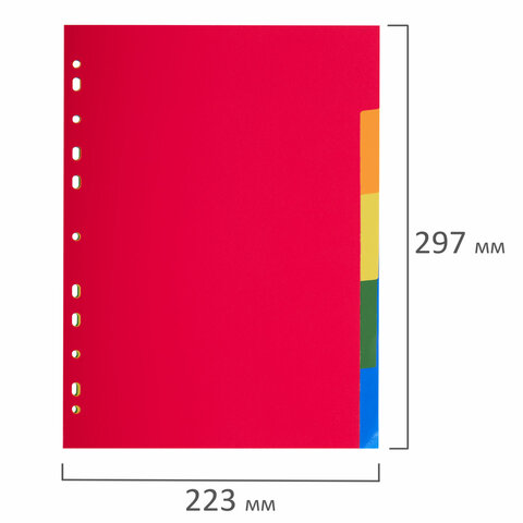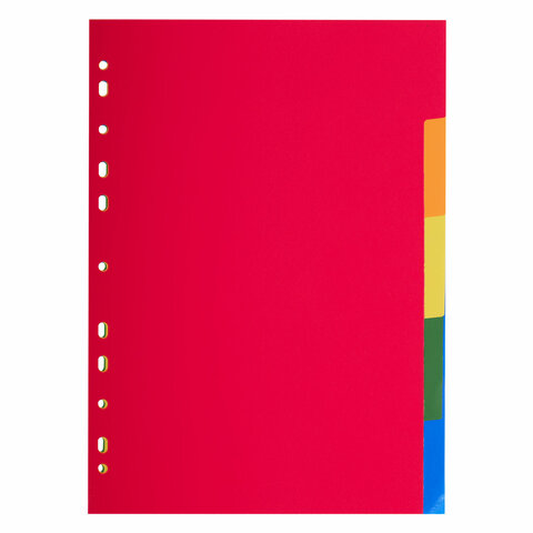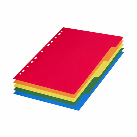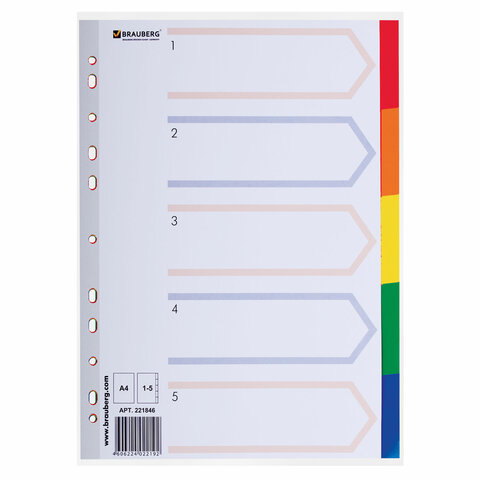 Разделитель пластиковый BRAUBERG, А4, 5 листов, по цветам, оглавление, Китай, 221846