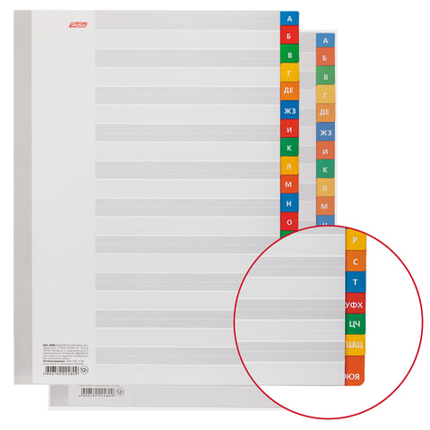 Разделители листов А4 (20 листов 297х225 мм) картонные, алфавитный А-Я, HATBER, 4AR_12005, М224809