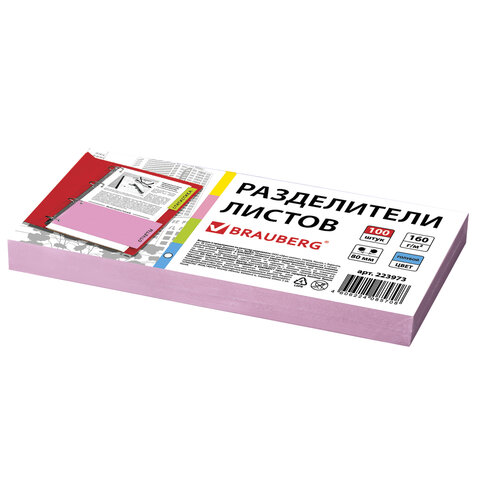 Разделители листов (полосы 240х105 мм) картонные, КОМПЛЕКТ 100 штук, розовые, BRAUBERG, 223974