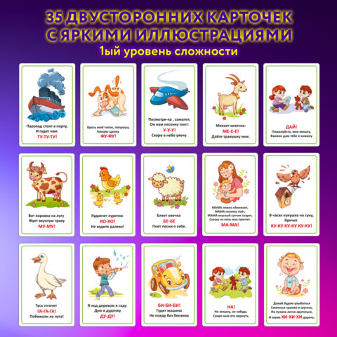 Карточки для развития речи ЗВУКОПОДРАЖАНИЕ, 70 картинок, 10х15 см, 310 г/м2, ЮНЛАНДИЯ, 691021