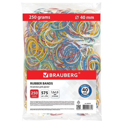 Резинки банковские универсальные диаметром 40 мм, BRAUBERG 250 г, цветные, натуральный каучук, 440164